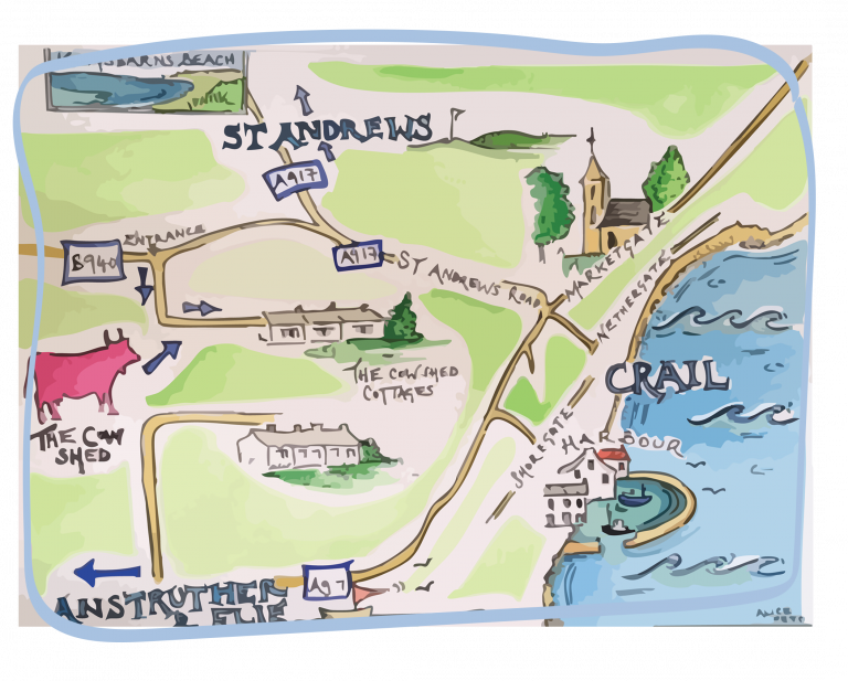 Located just outside the village of Crail and 10 minutes drive from St Andrews in Fife, Scotland. There is plenty of on-site parking.
